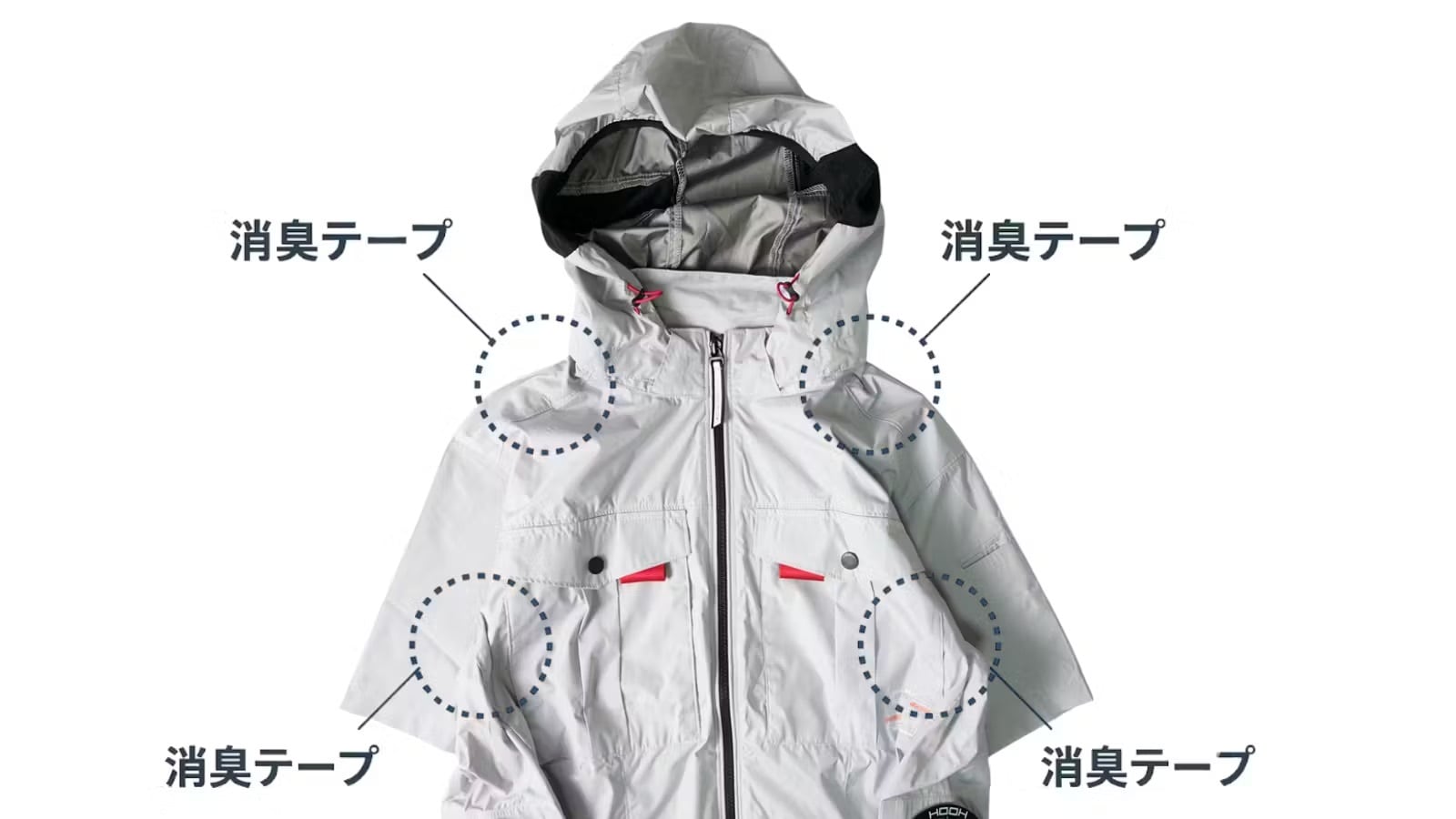首元や脇など、汗をかきやすい部分には消臭テープを配置。