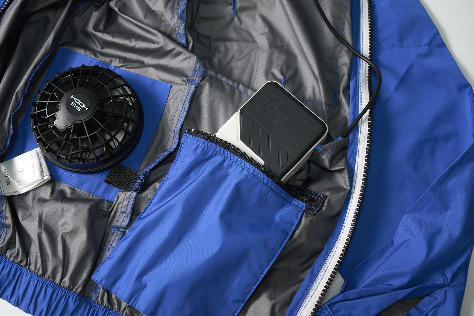 【ロイヤルブルー】サイドファン長袖フードジャケット+ファン+バッテリセット