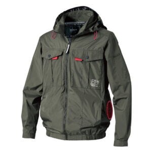 【カーキ】サイドファン長袖フードジャケット+ファン+バッテリセット