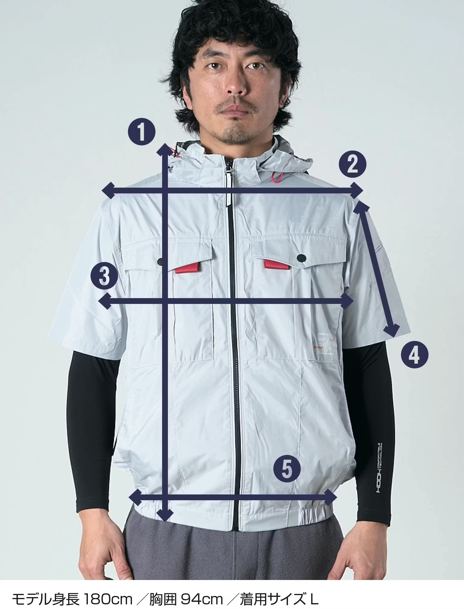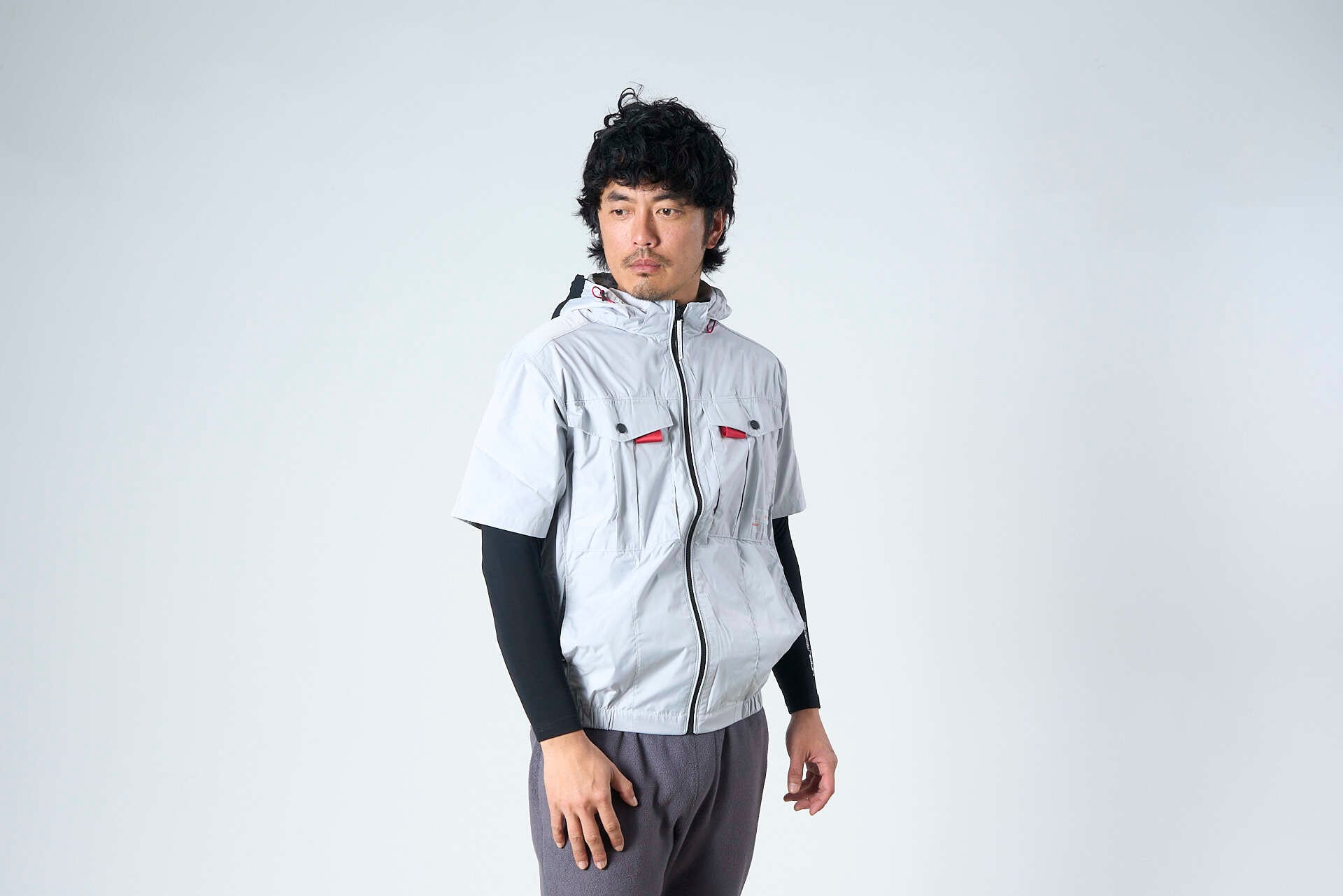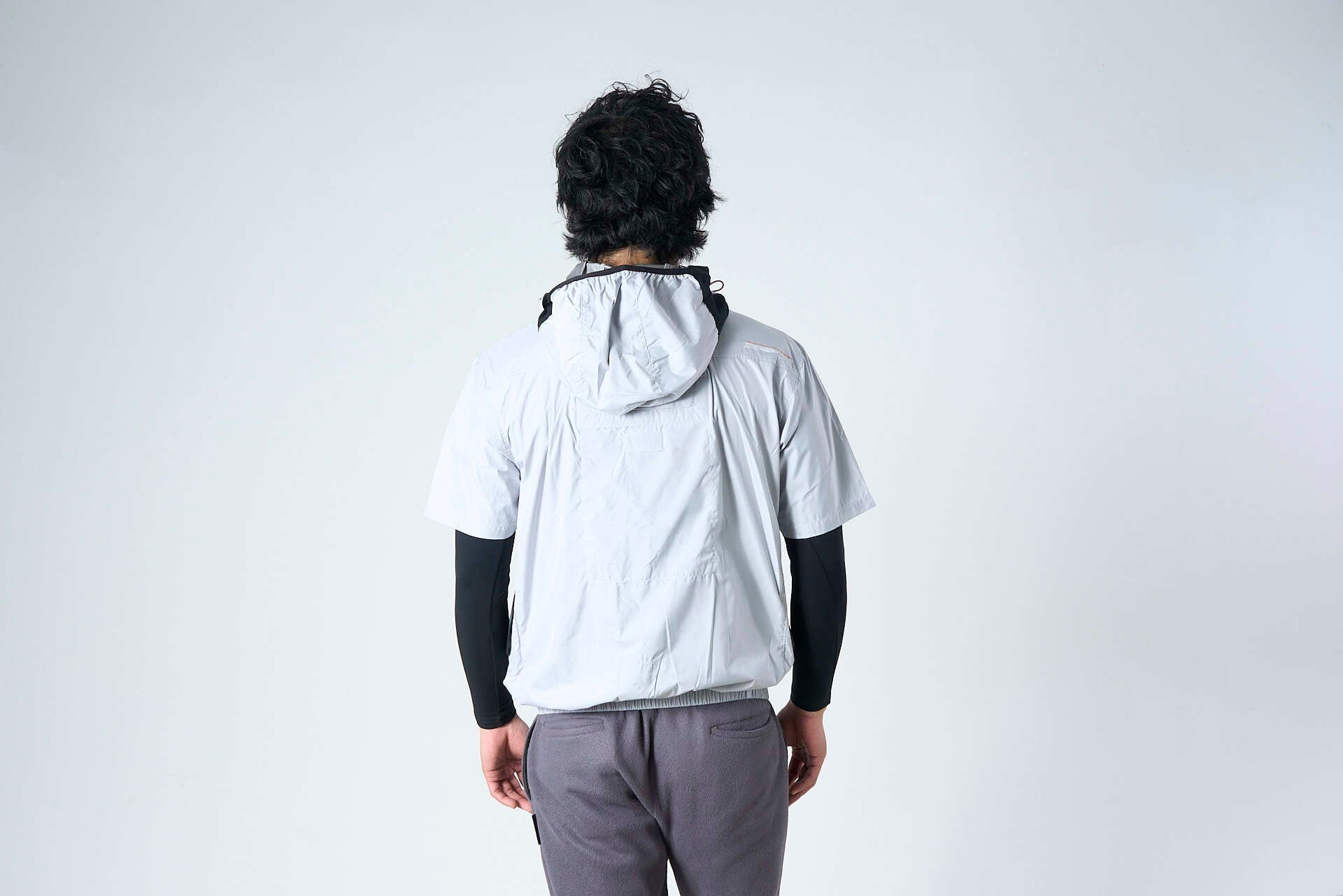 【シルバーグレー】サイドファン半袖フードジャケット+ファン+バッテリセット