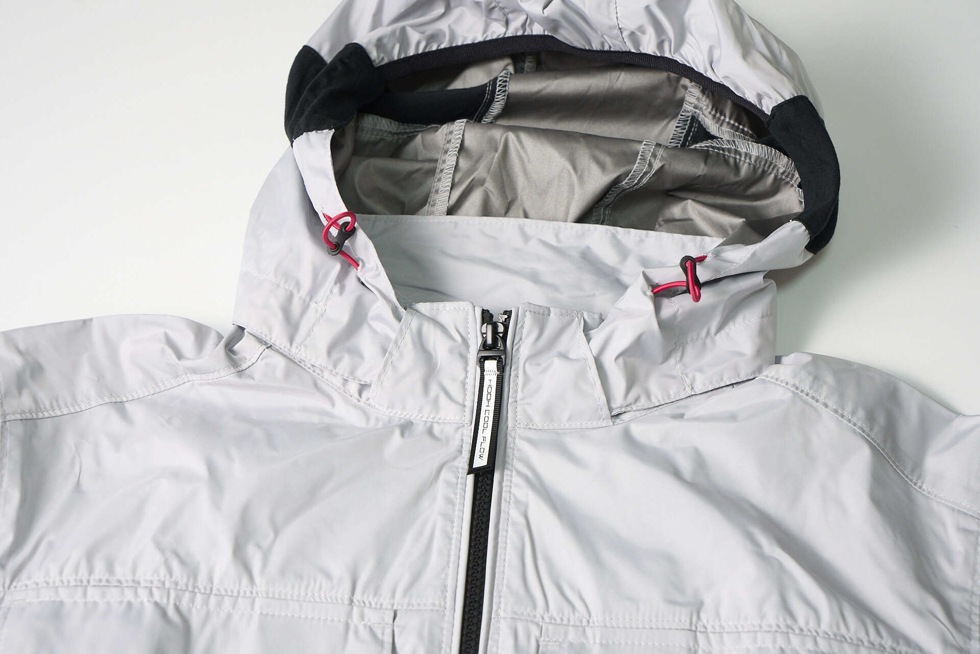 消臭テープ&フード取り外し機能 気になる汗のニオイを抑える消臭テープを内蔵。フードは着脱可能で、ヘルメットの有無やシーンに合わせて自由にスタイルを選べます。