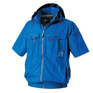 【ロイヤルブルー】サイドファン半袖フードジャケット+ファン+バッテリセット