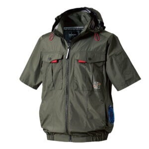 【カーキ】サイドファン半袖フードジャケット+ファン+バッテリセット