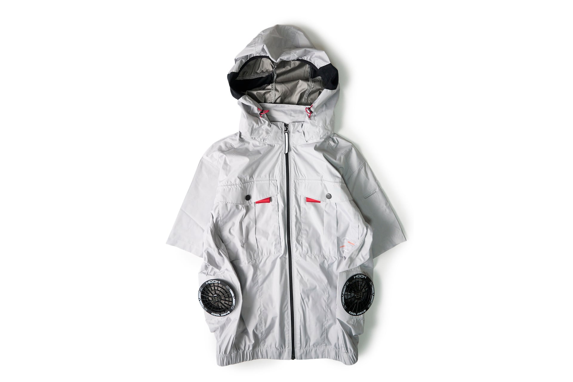 【シルバーグレー】サイドファン半袖フードジャケット単品