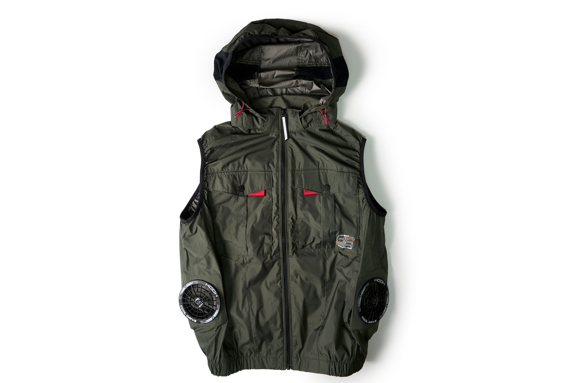 【カーキ】サイドファンフードベスト単品